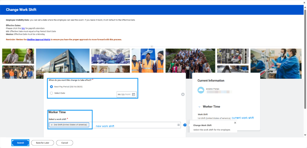 Change Work Shift (Initiating Manager)