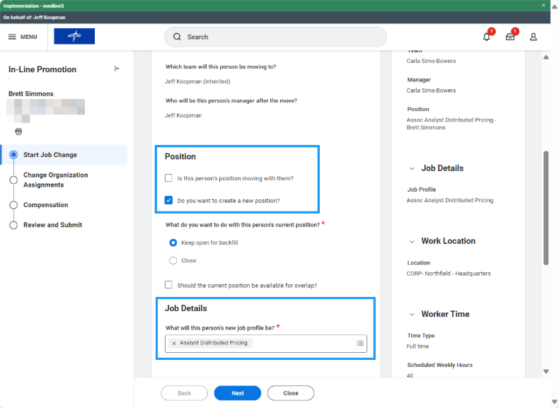 In-Line Promotion with Manager Change – Plan to Backfill (HR Partner)